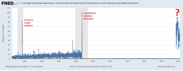 E che negli ultimi 6 mesi ha inoltre visto interventi a gamba tesa della FED sul mercato dei REPO al fine di “sedare” delle tensioni nell’interbancario che a tutt’oggi non sono ancora ben note ma che non si vedevano dal lontano 2008 e così estremi come durante il fallimento Lehman Brothers o l’attacco alle torri gemelle.