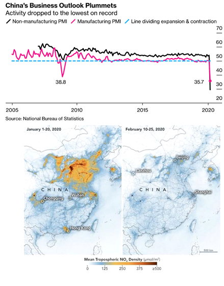 Nel fine settimana è infatti stato pubblicato l’indicatore PMI manifatturiero e non della Cina a fine febbraio ed è risultato clamorosamente negativo e da record storico, rispetto alle rilevazioni precedenti e ben peggiore del 2008.