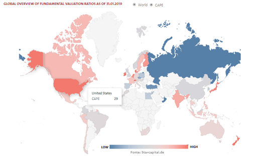 Dall’altro lato, dopo lo spavento di fine anno e grazie ad uno dei più ampi movimenti di rimbalzo da inizio anno che si ricordi da un quasi un trentennio negli USA e sicuramente eccezionale anche per molti altri listini al traino della locomotiva a stelle e strisce, si è tornati a valutazioni care in diversi paesi del mondo e con alla guida la stessa America.